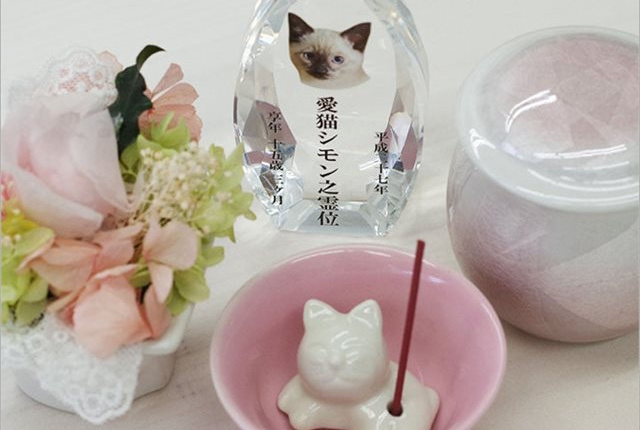 花立・ロウソク立て・水入れなど、国産陶器やクリスタル、ガラスでできた仏具はとてもおしゃれです。オーダーでお作りしているクリスタル製の位牌には、ペットの写真とご希望の内容を施します。